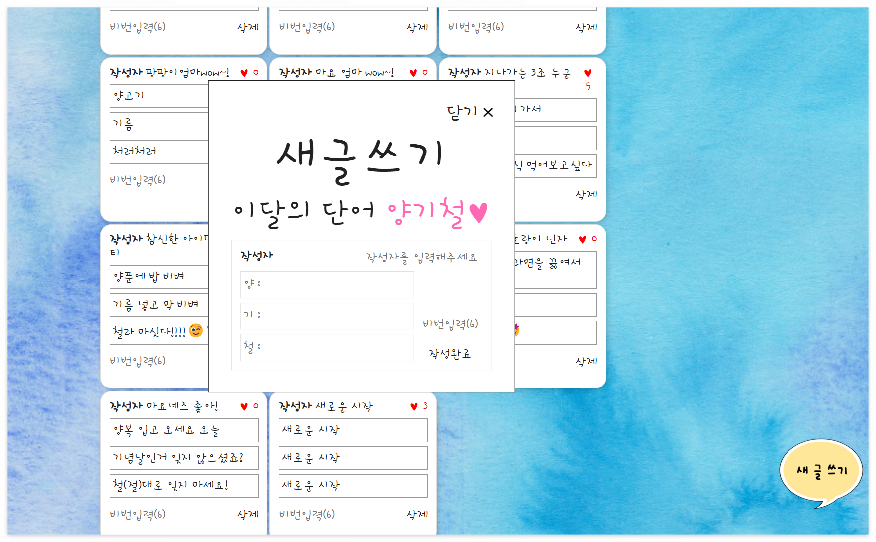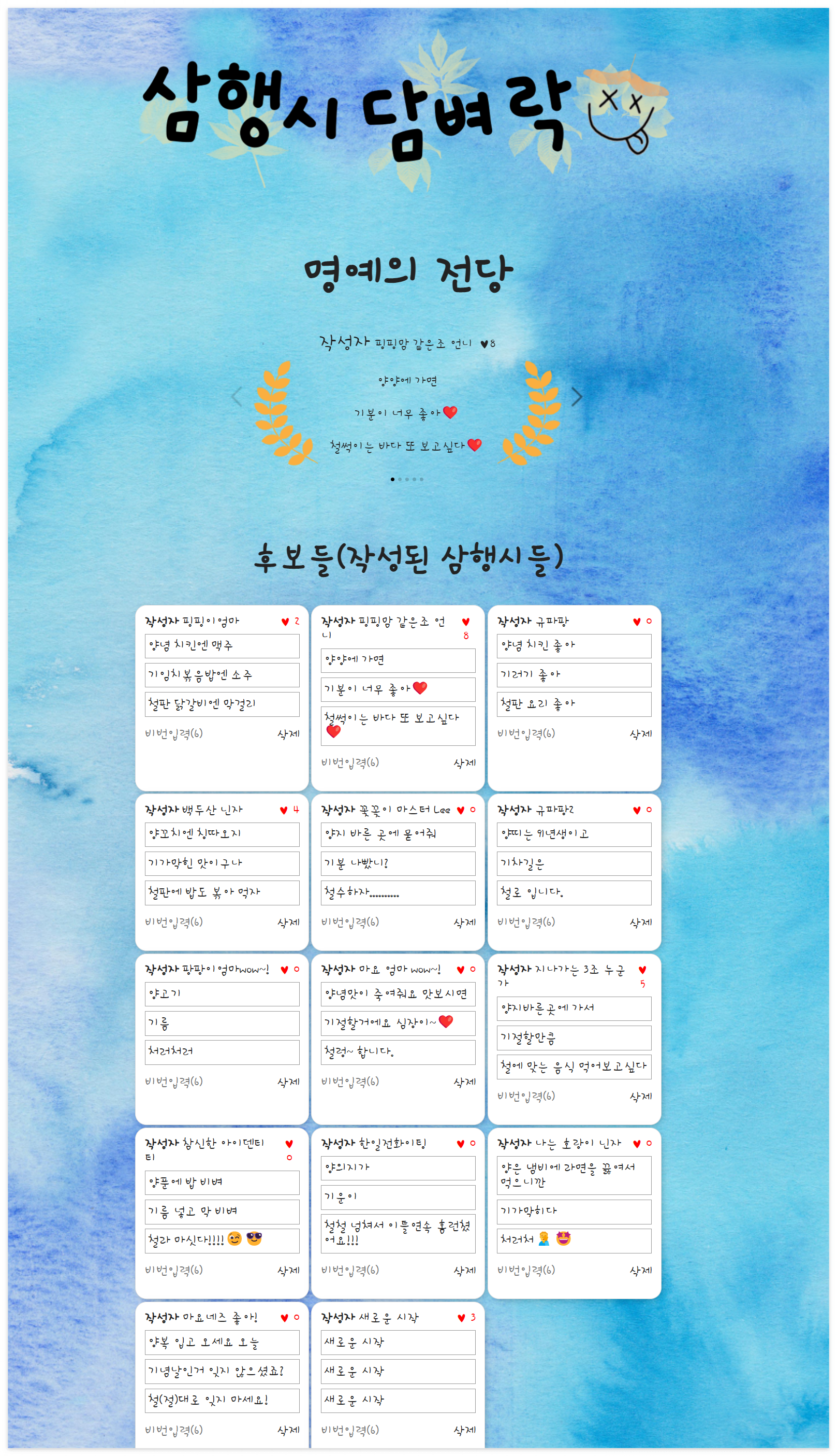 다른 사람들이 남긴 삼행시를 시간 가는 줄 모르고 구경하다가
