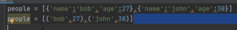 사전형에서도 이렇게 중괄호 대신에 튜플로 쓸 수 있는데, 복잡해보이지만 마찬가지로 불변형이라는 메리트 때문에 쓴다.