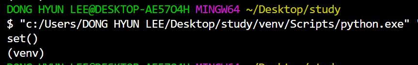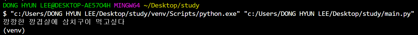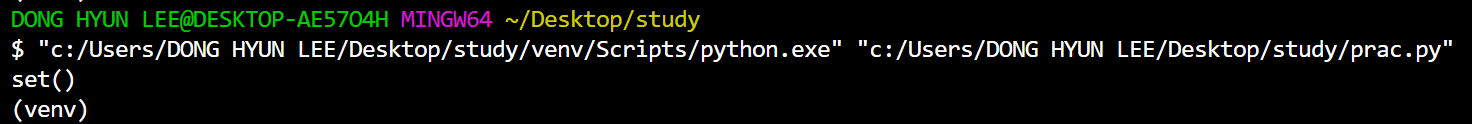 $ "c:/Users/DONG HYUN LEE/Desktop/study/venv/Scripts/python.exe" "c:/Users/DONG HYUN LEE/Desktop/study/prac.py"