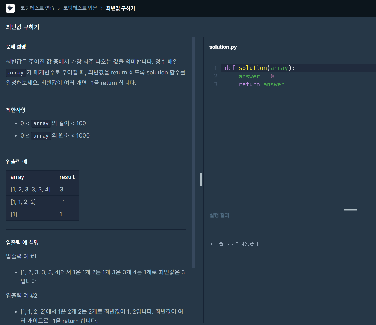 def solution(array): #array라는 리스트를 받는 함수를 선언