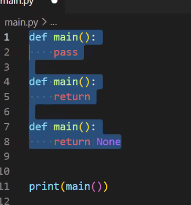 셋 다 리턴이 있으나 리턴이 생략되었거나 리턴의 값이 생략되었거나 넌을 리턴한거임.