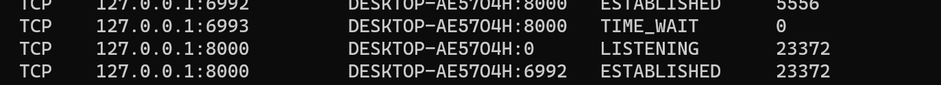 먼저 현재 실행 중인 모든 포트를 조회한다.