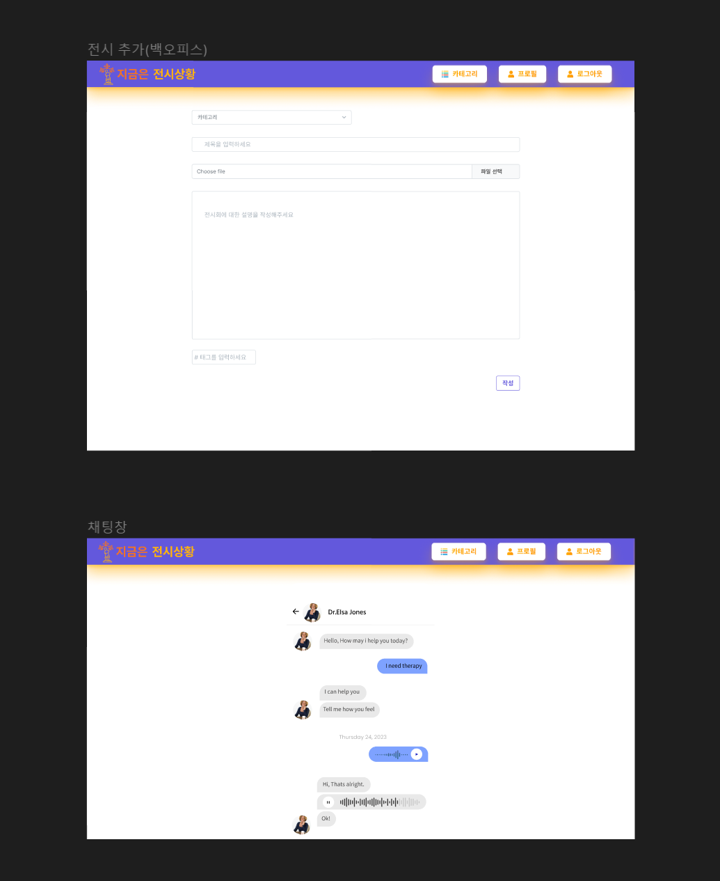 AI로 오픈중인 전시를 카테고리별 분류하여 보여주거나 이용자가 상세보기한 전시와 비슷한 분위기의 전시를 추천해준다.